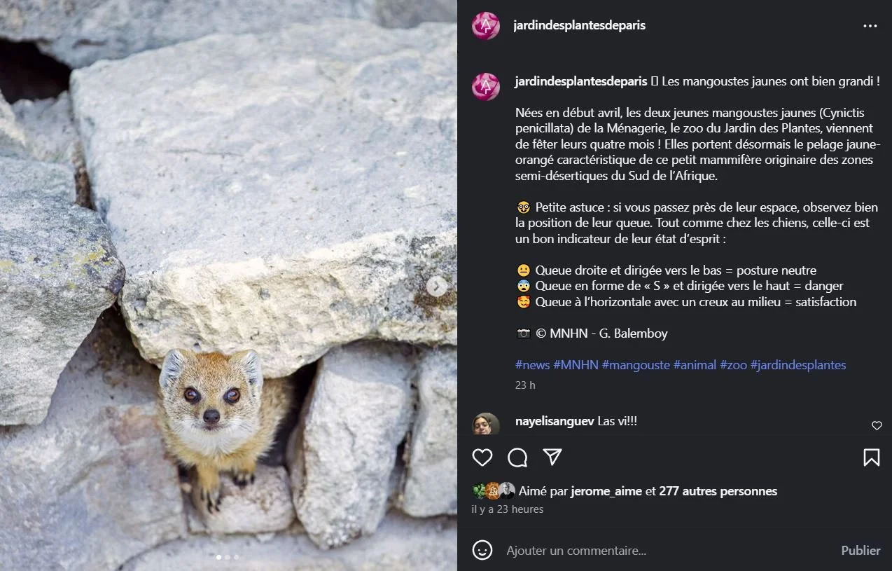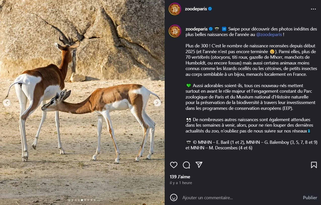 2025 Instagram post for the Zoo de Paris, MNHN, Paris